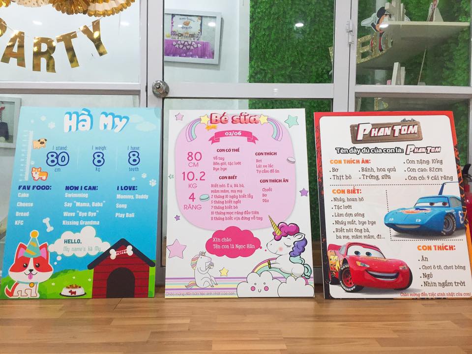Bảng thông tin – Nơi lưu giữ lại những kỷ niệm của các bé. Nơi đánh dấu các mốc phát triển của bé trong những năm đầu đời. Nana Party cung cấp cho khách hàng những mẫu Chalkboard tinh tế và đẹp nhất, cũng không kém phần ngộ nghĩnh.